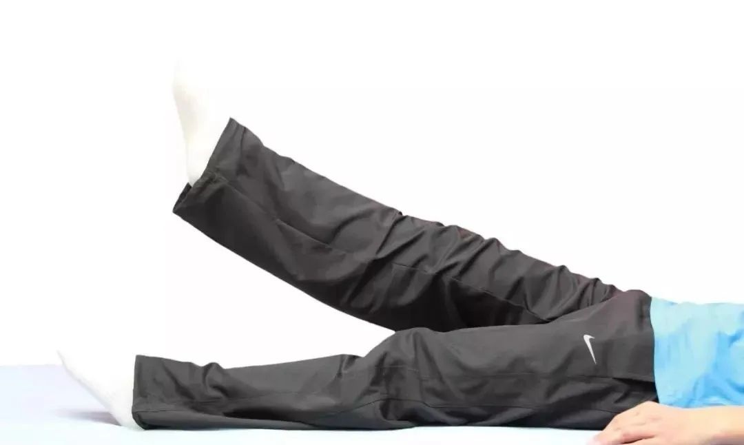 健侧下肢伸直抬高30°,保持10s,也可将健腿托住患腿作直腿抬高,重复5次。