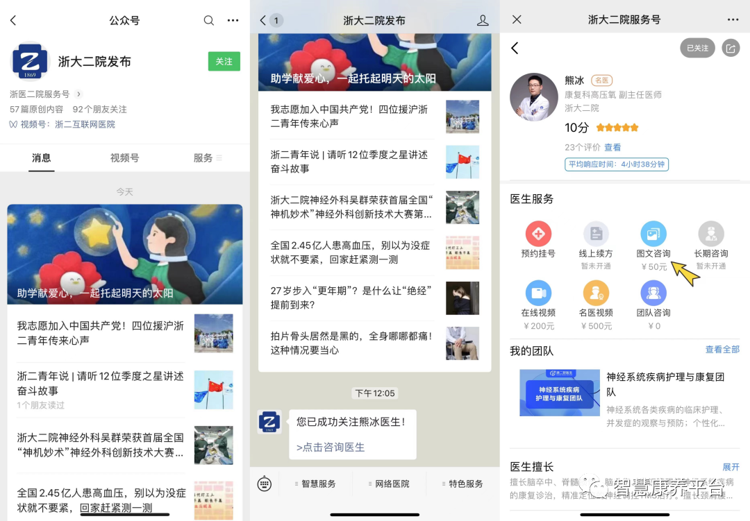 关注“浙大二院发布”,点击咨询医生,进入图文咨询。