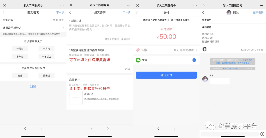 浙二康复科为向患者提供便捷的住院康复咨询服务,浙大二院康复科携手互联网医院打通“数字医路”,坚持就医“三少”原则,少排队、少等待、少跑路,让患者可以获得更流畅的住院预约服务。