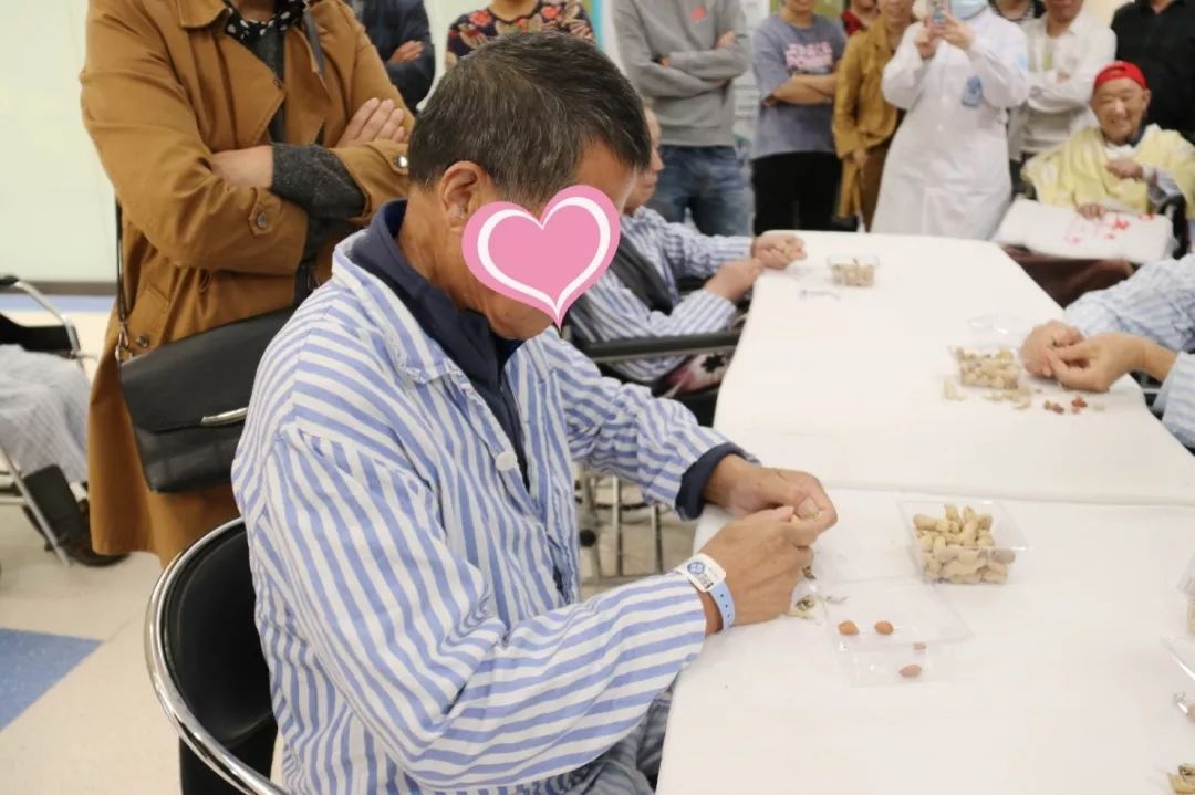 剥花生不仅是手指粗大运动到精细运动的转换,而且能提高患者手功能的锻炼能力。康复医学科护士积极主动配合康复医师对患者日常活动进行指导和训练,从而使患者实现全面康复。
