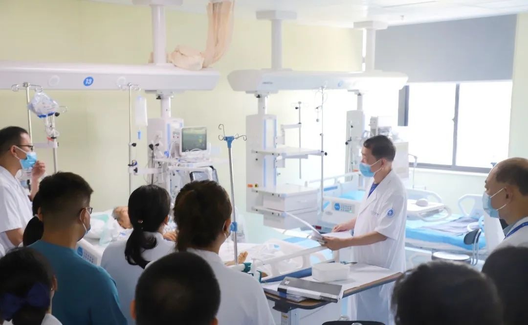 8月17日下午,作为浙江大学附属第一医院扶持共建的浙江大学康复医院,本着“强内涵、强服务”的理念,为强化医疗质量管理,提升临床业务水平,建设培养高素质的临床医生和临床护理队伍为目标,邀请浙江大学附属第一医院(余杭院区)急诊创伤中心重症医学科首席专家,原浙大一附院重症医学科主任,浙江大学康复医院特聘首席医疗顾问方强教授在我院首开重症医学教学查房工作。