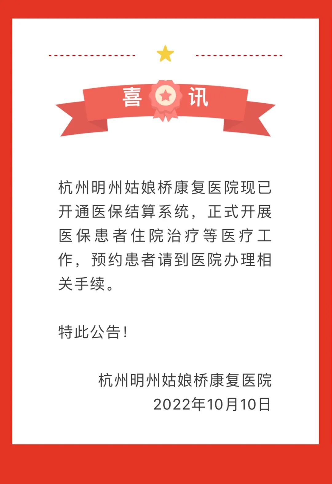 经过前期筹备与调试工作,杭州明州姑娘桥康复医院已具备良好的硬软件条件及各项保障,患者可持医保科就医、住院、康复治疗等。