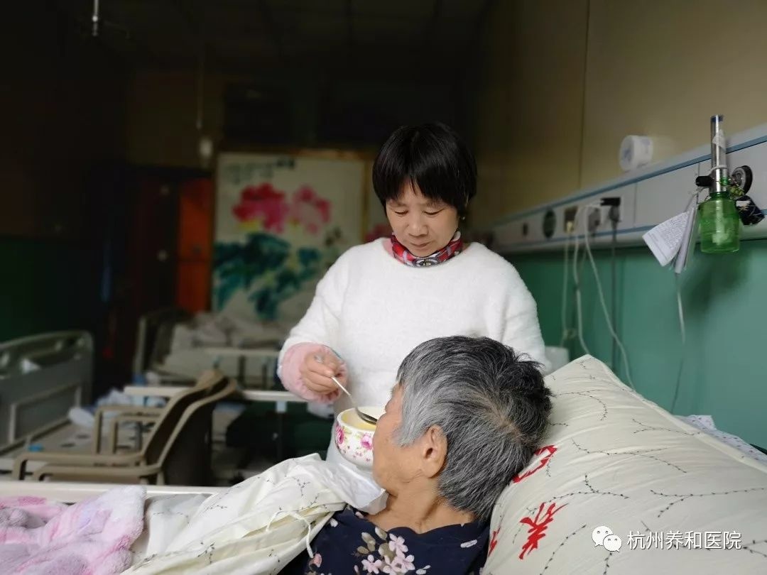 有一名娄奶奶今年已88岁了,患有脑梗塞,自当初女儿们把母亲选住杭州养和医院,一住就是七年之久。奶奶两个女儿轮流上门看望妈妈,哪怕风雪雨天,从没间断过,对长辈的孝心与爱心自不用说。从奶奶的大女儿话语中,我们真实地感受到了出自于对养和医院提供的条件与服务的一片真情与赞美。