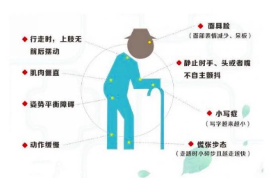 起病隐袭,进展缓慢。首发症状通常是一侧肢体的震颤或活动笨拙,进而累及对侧肢体。临床上主要表现为静止性震颤、运动迟缓、肌强直和姿势步态障碍及抑郁、便秘和睡眠障碍等非运动症状。