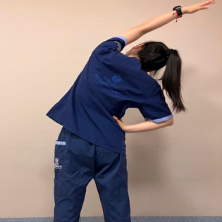 ①侧弯运动:双脚与肩同宽,左右侧弯来回数次