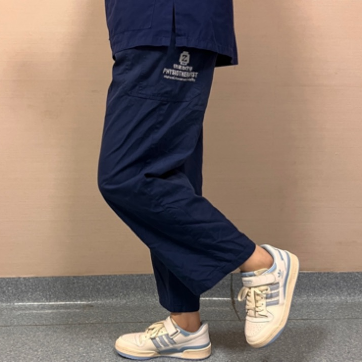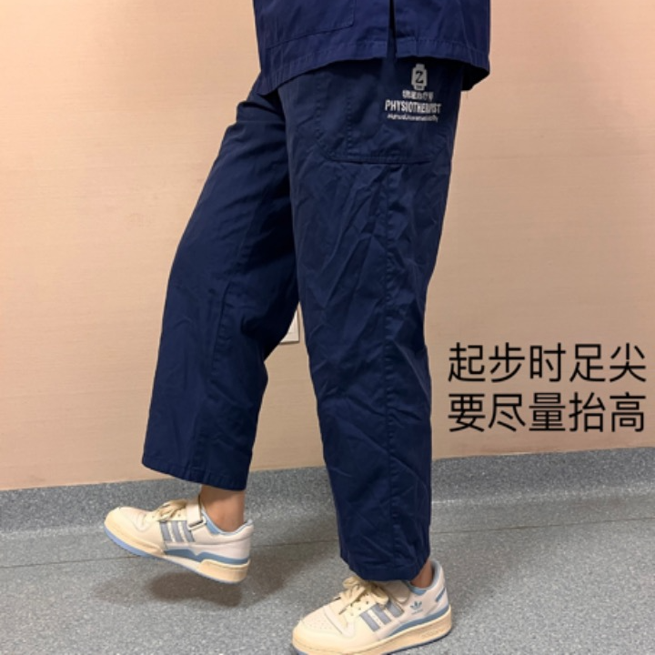 其关键是抬高腿和跨步大。要求患者双眼直视前方,身体直立,先原地踏步,然后缓慢行走。