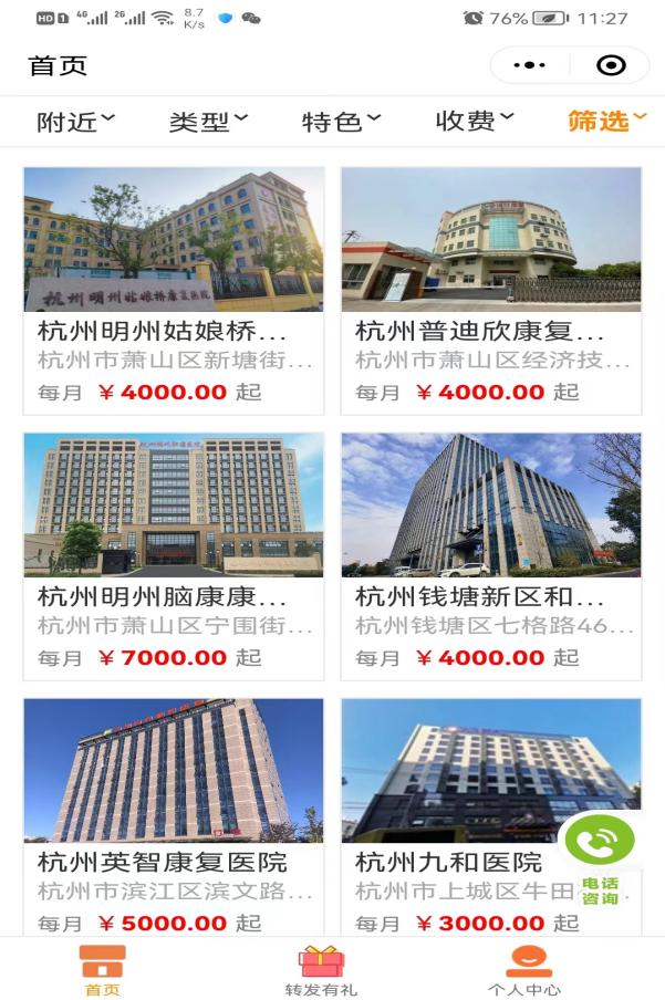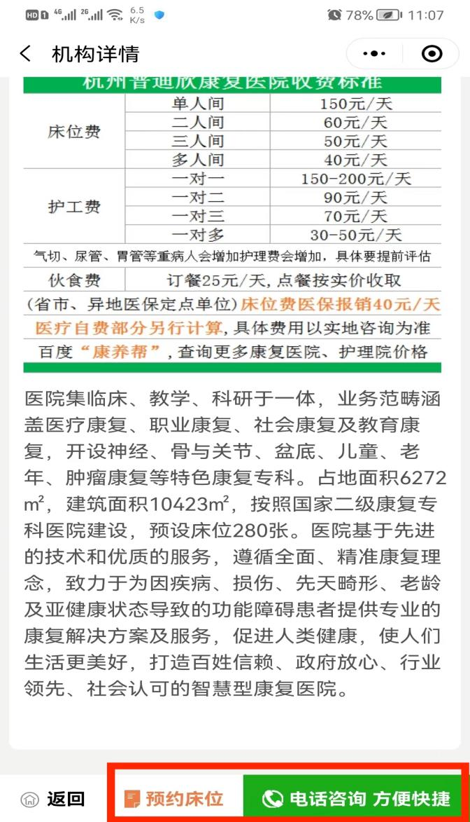5、进入筛选结果页面,根据需要选择康复医院,查看医院详情
