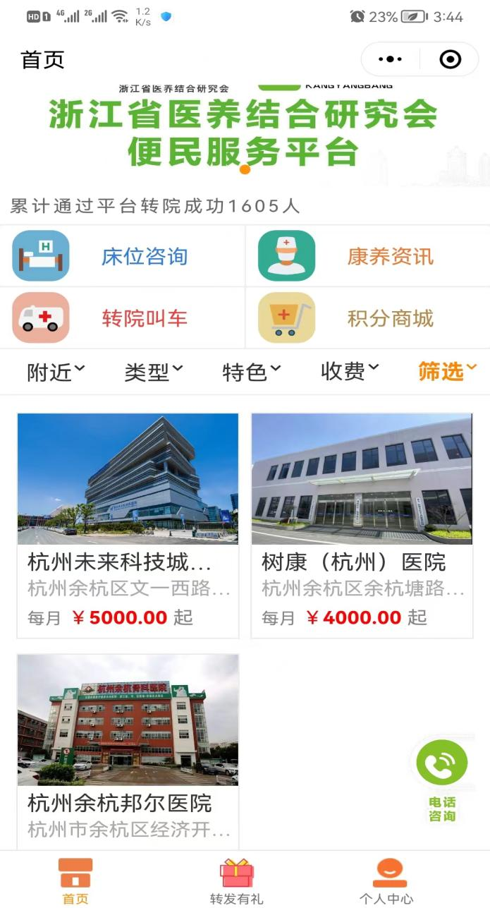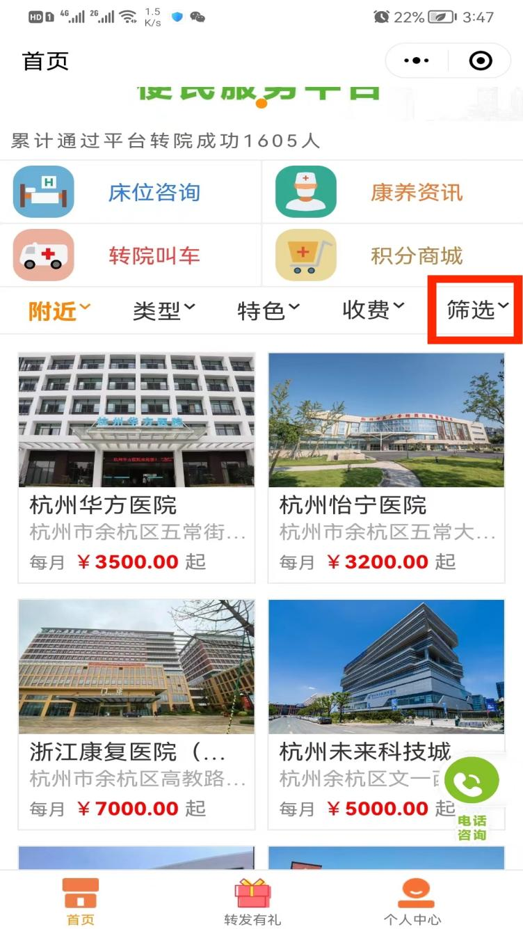 3、进入“智慧康养小程序”主界面,点击“筛选”按钮