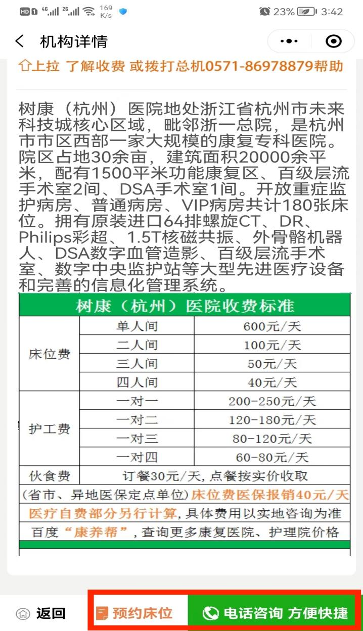 5、进入筛选结果页面,根据需要选择康复医院,查看医院详情