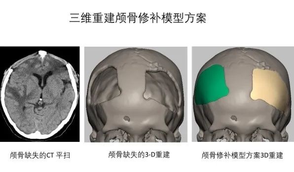 通过三维打印技术,能够完全恢复颅骨的解剖结构,专门为患者量身定制缺损的颅骨修复假体,减少了手术时间。