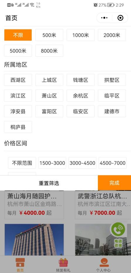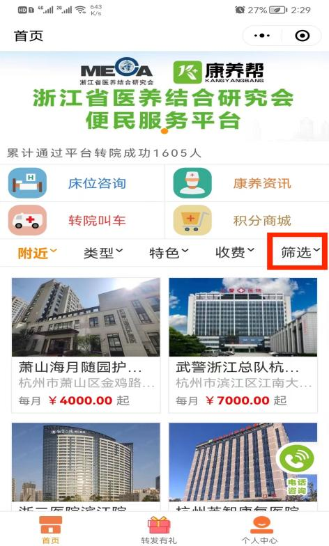 3、进入“智慧康养小程序”主界面,点击“筛选”按钮