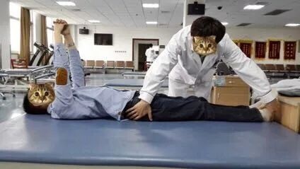 在安全的前提下,可以坐着进行一些转头的训练和拿东西的训练。