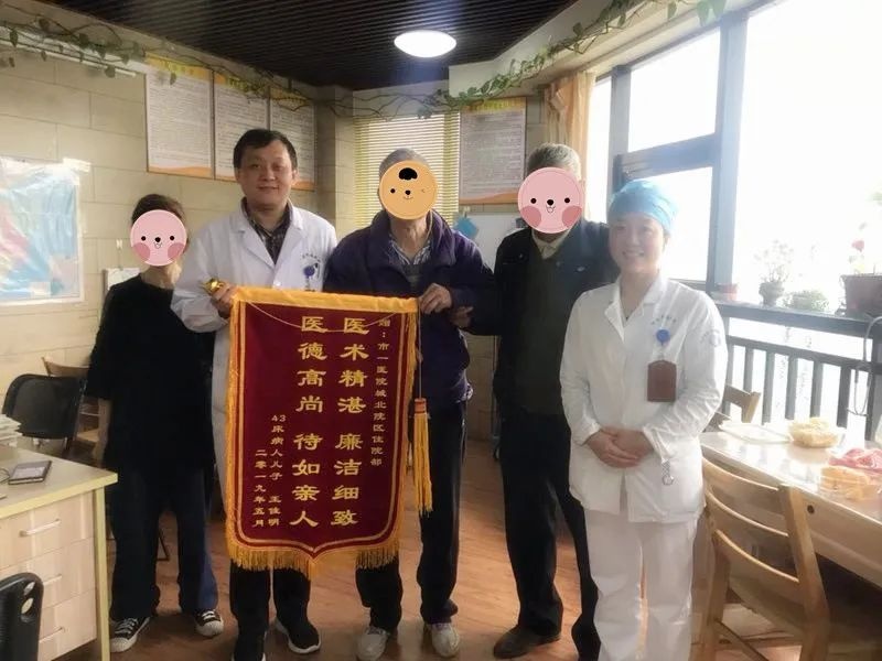 团队给王爷爷做了运动、作业、气压、吞咽训练、针灸等治疗,还制定了针对性的治疗和康复训练。王爷爷每天都积极主动配合医生的治疗和康复训练。今年5月,王爷爷的家属还特意赶来,为老年康复科的医疗团队送上了锦旗以表谢意。王爷爷老伴感动地说:“多亏了你们,正是你们的尽心尽责,我家老王才重获新生,真的太谢谢你们了。”
