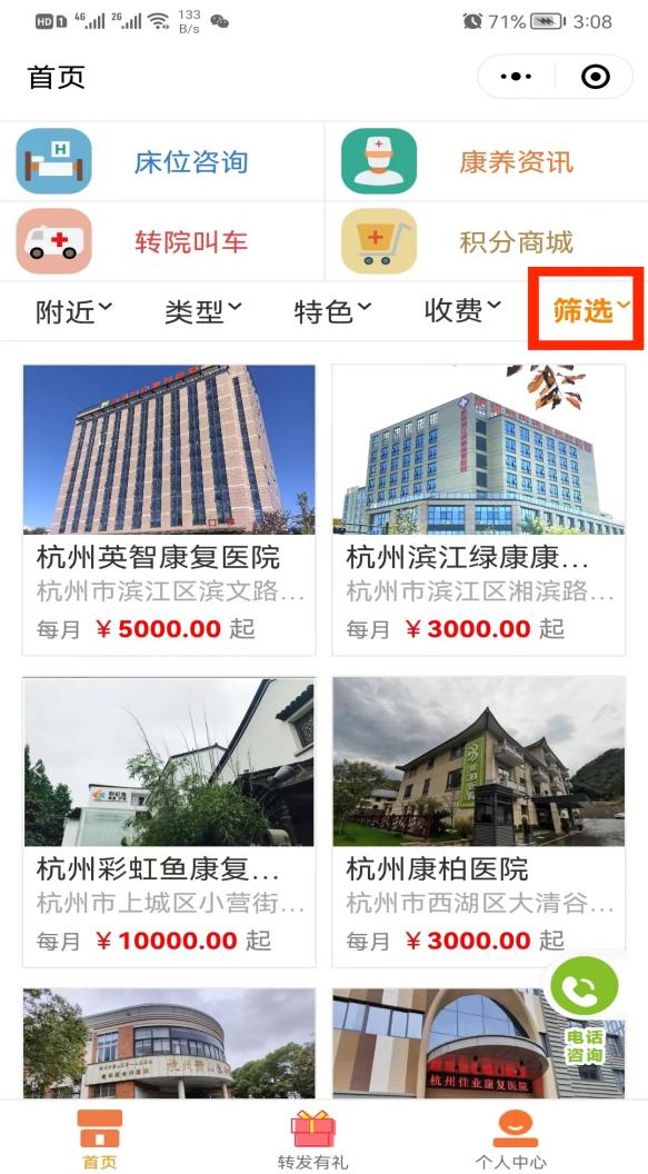 5、进入筛选结果页面,根据需要选择康复医院