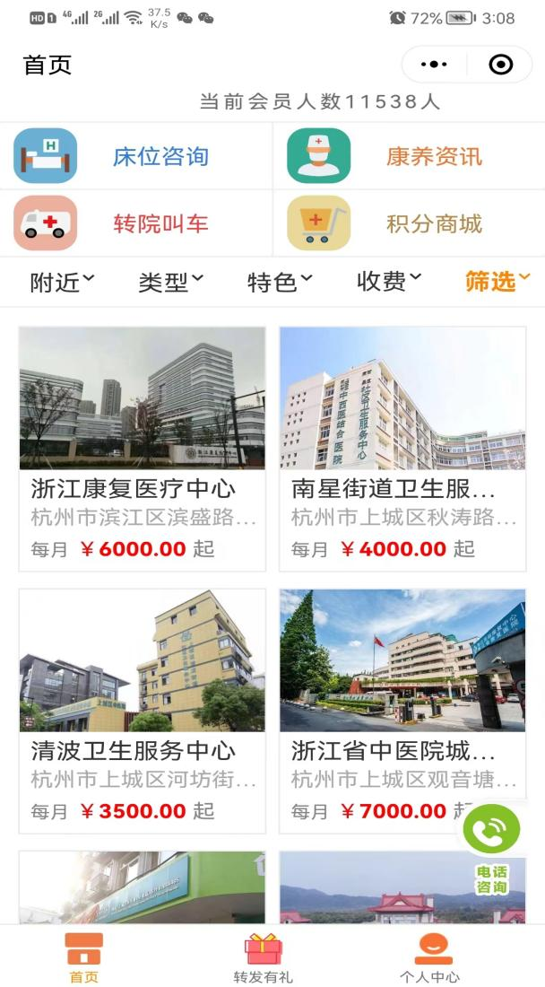 3、进入“智慧康养小程序”主界面,点击“筛选”按钮