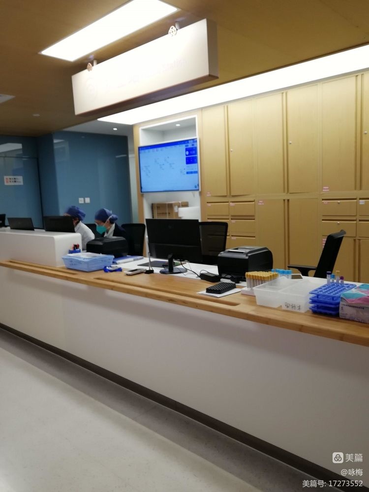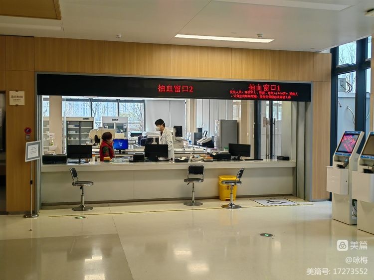 城北院区设计无论从色彩(黄灰白主色调)到结构无不体现设计师的匠心独具!(抽血室右面L角是两排大窗户,既利用了自然光,又引入了窗外景色,绿植花草。