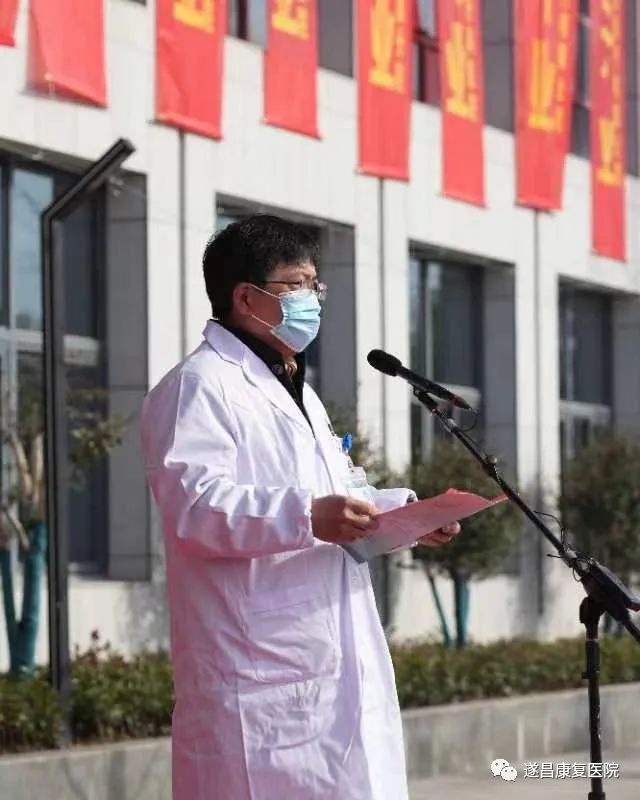 遂昌康复医院院长吴国强感谢全体员工的辛勤付出,并以开业作为新的起点,对医护人员提出了新的要求。