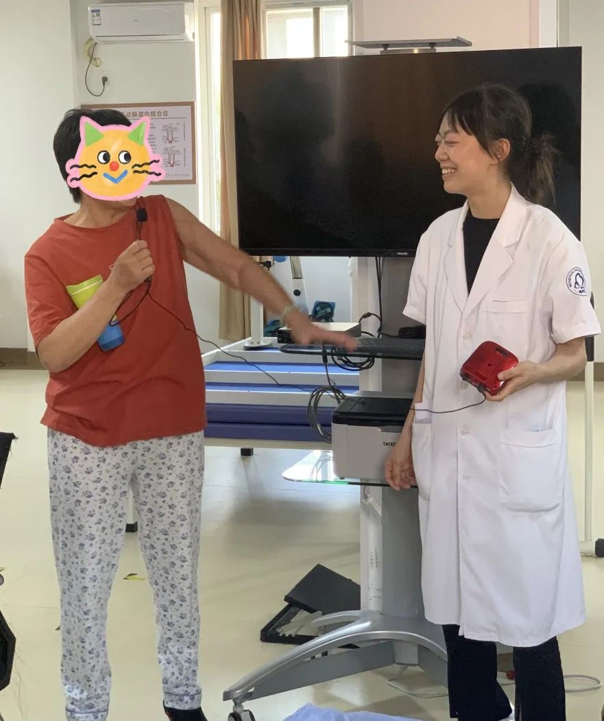 患者张阿姨:入院康复70天,感觉这里很温暖,像家一样,在小林老师的帮助下,我的手也可以正常抬起,真的很感谢他们。