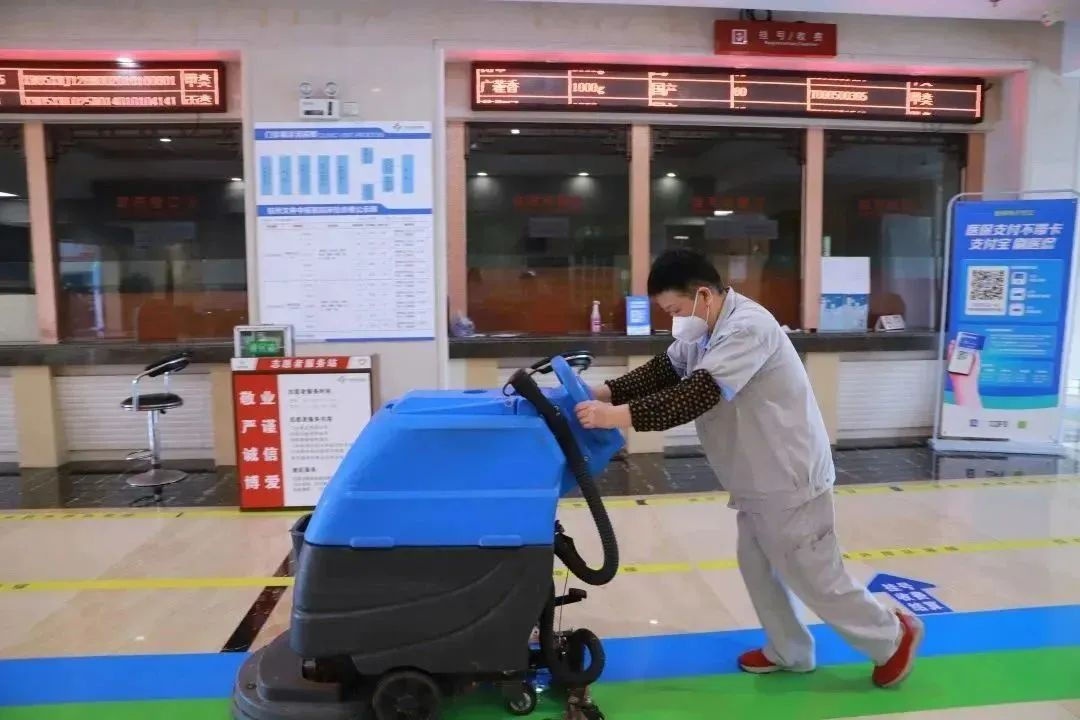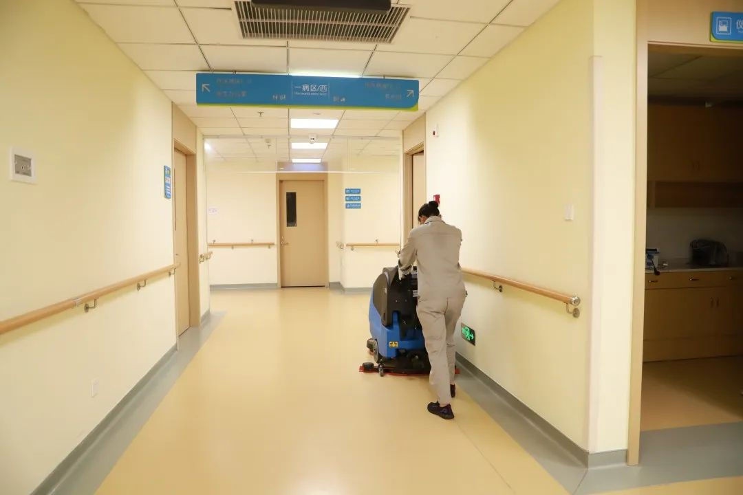 为了让患者进入医院就有一个整洁舒适安全的就医环境,保洁阿姨们早早地来到岗位上。地板要清洁两次、把手扶手消毒、清扫垃圾......她们细致地打扫每一个角落,不留一个死角。用行动和服务保障患者、医护人员和其他员工的健康安全。