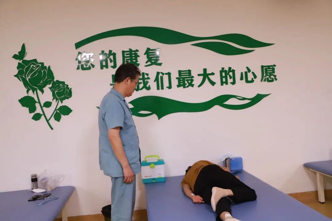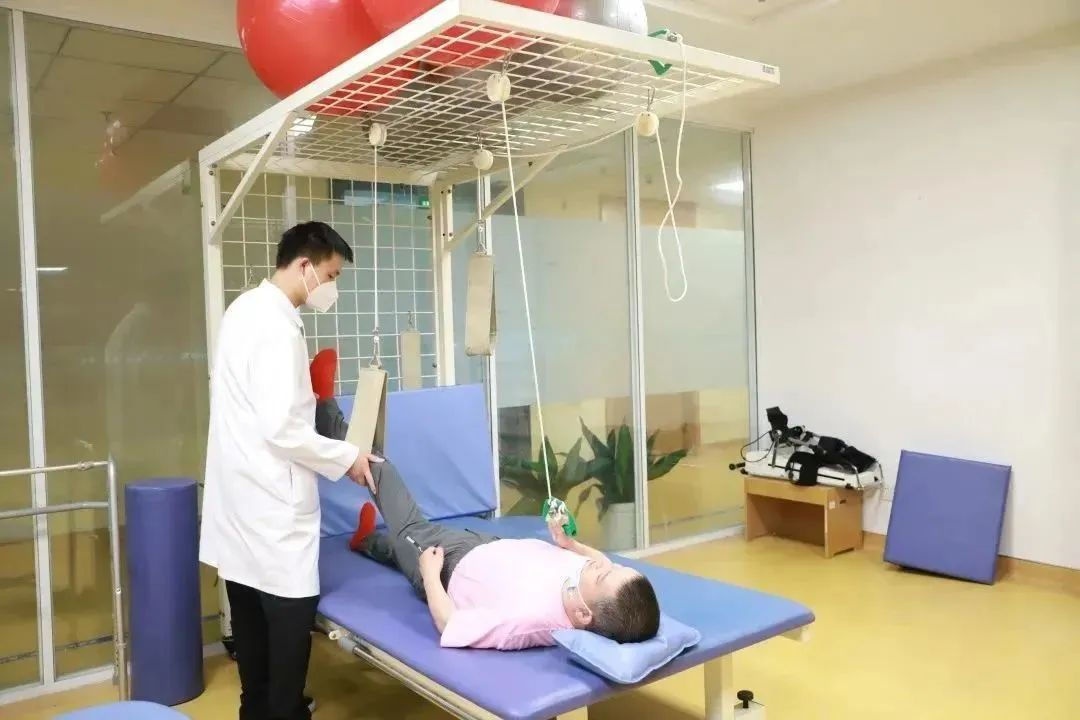 在康复治疗室,患者在康复师的指导下进行康复治疗。“来慢慢抬腿,对对,再坚持一下”,他们的声音始终温柔耐心。在这里,康复师们运用康复诊疗设备,帮助患者进行专业的康复锻炼,助其早日回归家庭,回归正常生活。