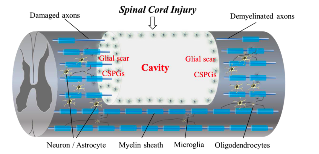 脊髓损伤(SCI)一种神经系统创伤性疾病,其发病率呈逐年上升趋势,据《柳叶刀神经病学杂志》报道,我国当时有脊髓损伤患者374万,新发脊髓损伤患者以9.3%、总脊髓损伤患者以30.6%的增长率逐年增长。脊髓损伤可导致运动和感觉功能的永久性丧失,严重影响患者的生活质量。目前,还没有有效的治疗方法可以完全恢复SCI后的功能。然而,生物材料领域的进步为那些受这种情况影响的人提供了新的希望,与 手术等传统的脊髓损伤治疗方法相比,通过组织工程技术结合细胞移植治疗脊髓损伤已引起越来越多的关注。