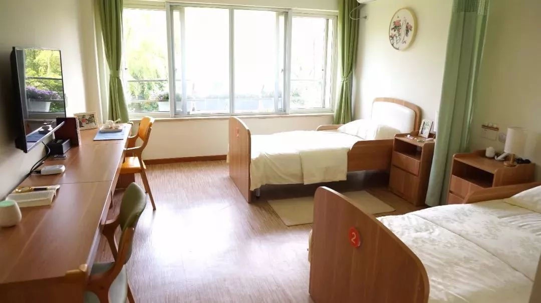 随园智汇坊·府苑新村一共有2种房型,双人间、三人间。双人间,房间面积为24平方左右。设有两张单人床,考虑到长者休息互不干扰,增加了床与床之间的隔帘,充分保护长者的个人隐私;房间内设有储物柜,可以放置私人物品。床的色调和地板家具色调一样,以暖色系为主。床边有加固安全拦挡,可防止老人发生坠床,床角进行圆角处理,防止长者磕到。每床单独配备床头柜,可放置长者私人物品,这样的标准间最适合夫妻居住。