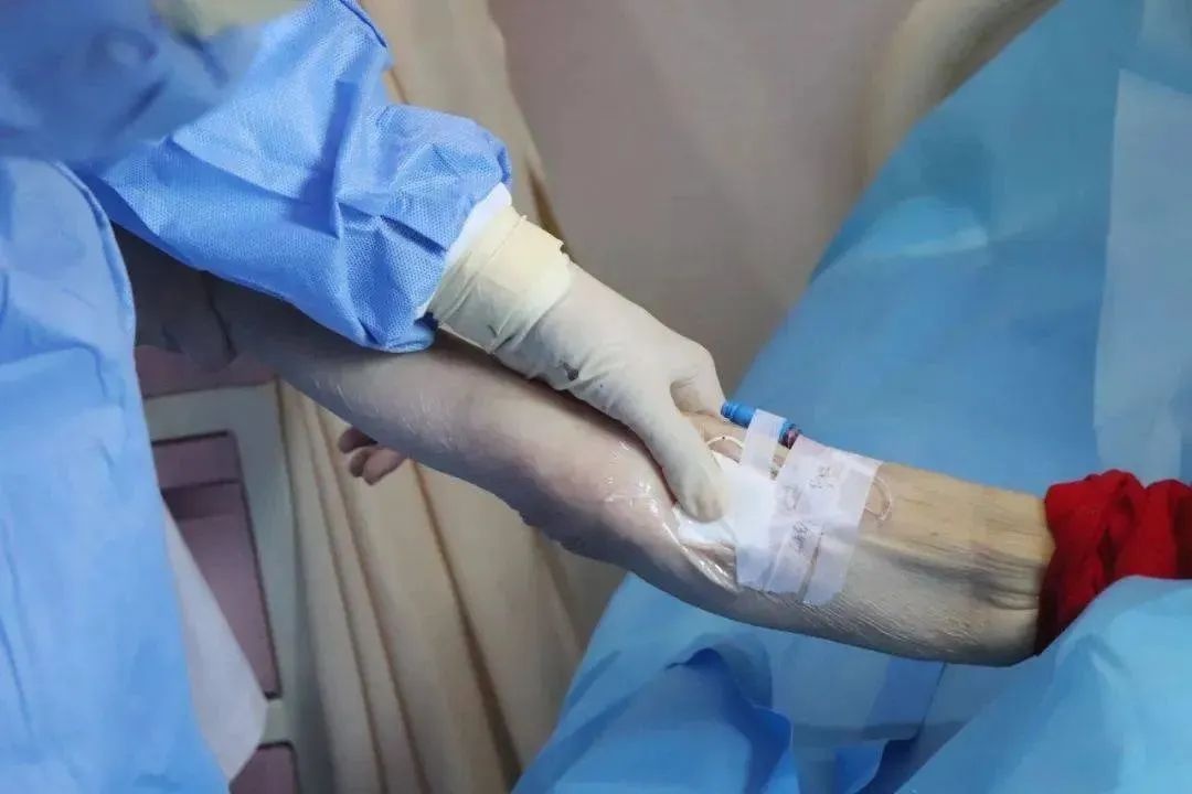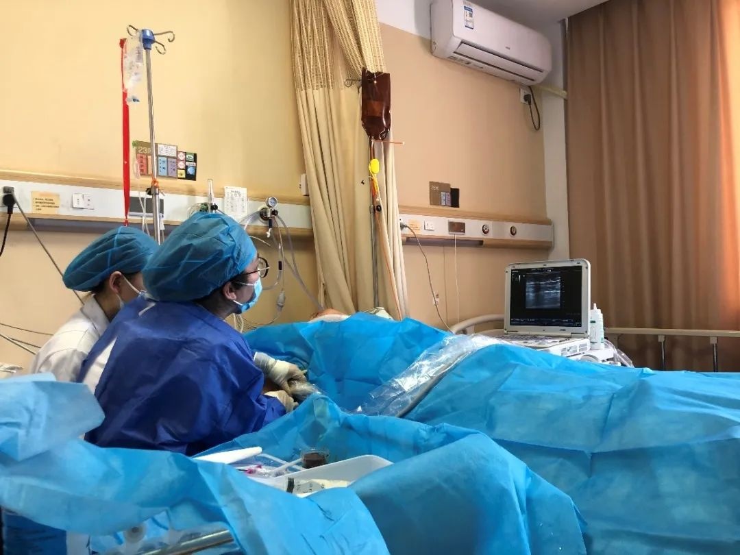 时间就是生命,为了更好地救治患者,给患者构建新的生命通道,我院由护理部主任林家巧牵头,三病区护士长忻红萍主导,一病区护士长王倩、二病区护士长窦雪辅助组成的置管小组对该患者进行会诊,经过详细的论证、周密的准备,在和家属充分沟通后,决定为患者实施B超引导下下腔静脉入路的PICC置管,期间穿刺及送管顺利,未见出血,导管顺利到达下腔静脉,位置准确,输液顺畅。
