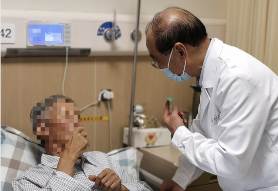 为了更直接地了解患者需求,裘昌林教授进入病房,与病友们进行面对面交流。裘教授详细询问了一位因言语不利舌肌萎缩4月余来院康复治疗的王先生(化名)的病情。针对王先生的情况进行查体后,裘教授总结病人情况,并结合患者症状表现与舌苔脉象,辨以脾肾阳虚,以温肾通阳,益气健脾为法,并开出相应中药处方。