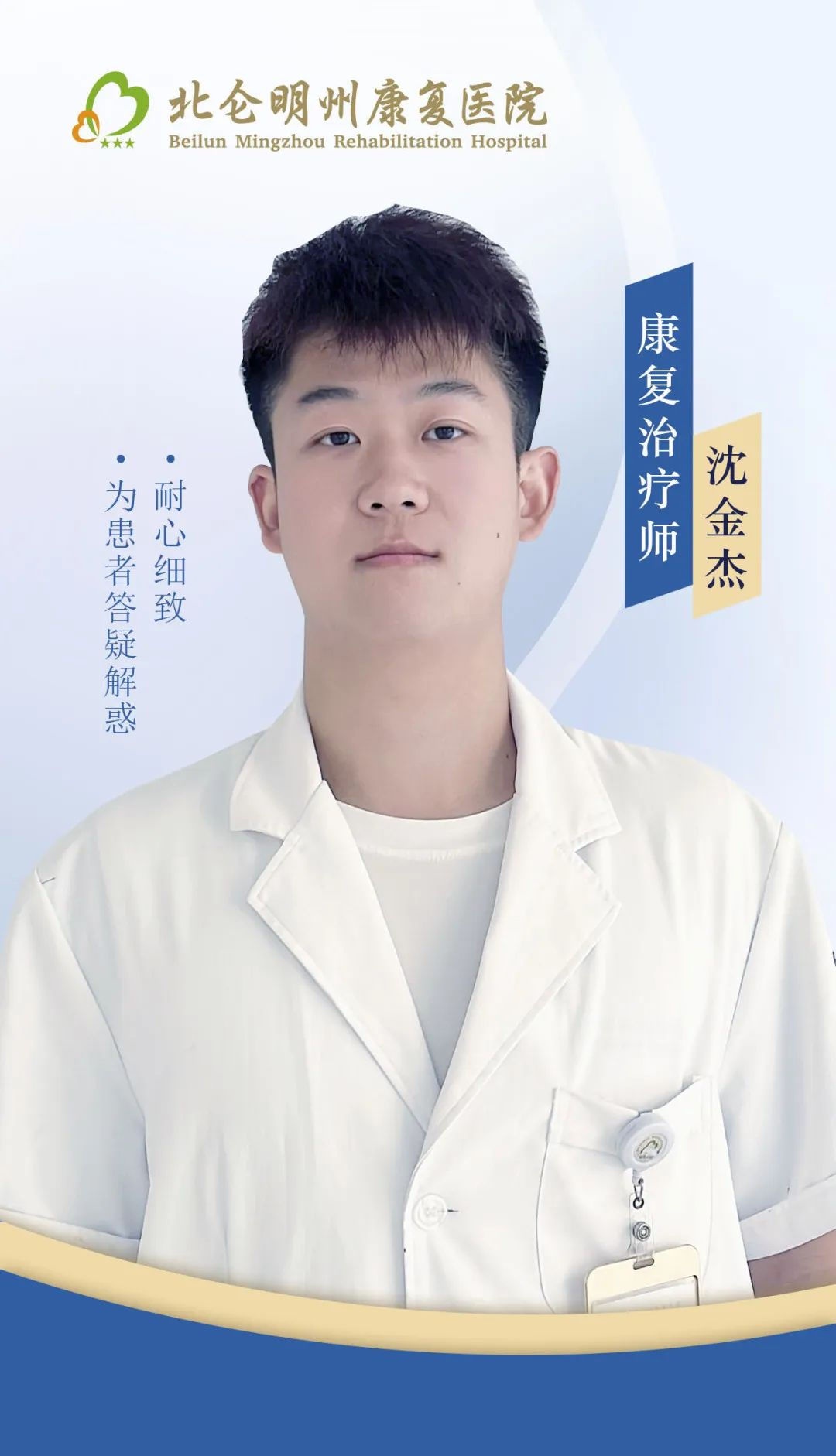 他是北仑明州康复医院康复科治疗师沈金杰,让我们看看关于他的故事吧~