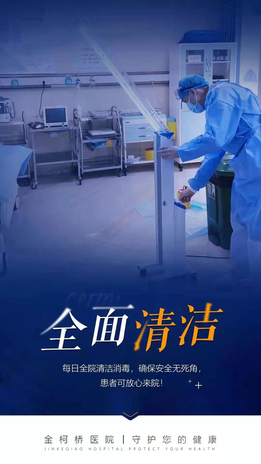 金柯桥医院,每日全院专业消毒,确保安全无死角,患者可以放心来院。目前我院已进行连续3天全面消毒,消毒包含院内所有设备、治疗室、手术室、办公区域、公共区域,做到消毒无死角,顾客的安全是我们的生命线。