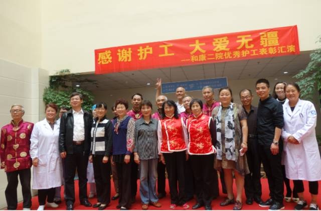 116名护工真正融于医院大家庭之中,与200名医务人员形成了和康二院完整、和谐与互助的大团队。医院邀请了患者、患者家属、社会代表、演出团体和员工等,在全国性医疗行业内和康二院首家为护工们举办了专场“感恩护工大爱无疆”文艺汇演,首家为护工们举办了“佛教文化”在护理工作中的应用培训与指导,首家在全院范围内推行与护工行走相遇院领导及医务人员要率先主动向护工问候致意。