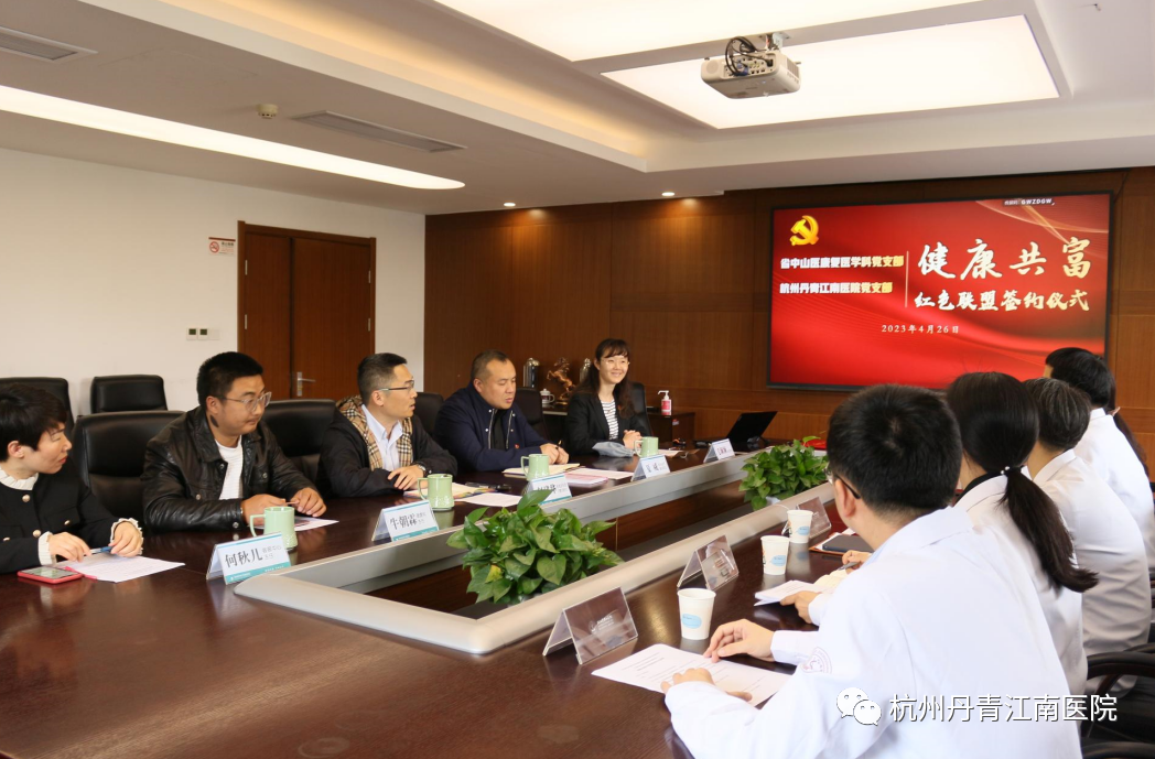 签约仪式上,浙江省中山医院党组织、杭州丹青江南医院党组织就共建的目标、内容和要求达成了共识,立足患者利益至上,以“共建”助力“共赢”,以党建引领协同创新,促进共同发展。