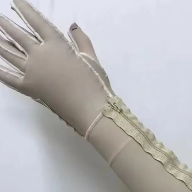 创面愈合时间超过 2 周即有出现瘢痕增生的可能,在伤后 1 个月左右逐渐明显,伤后 3~6个月是瘢痕增生的高峰期,表现为愈合部位持续加重的充血发红、发硬、隆起、表面高低不平、紧绷感并伴疹痒疼痛,可出现明显的毛细血管增生。压力治疗是大面积瘢痕治疗的首选方案。它可以减轻和控制肢体肿胀、限制瘢痕增生的幅度和程度、促进瘢痕软化、保护愈合皮肤、减轻疹痒疼痛等。烧伤患者伤口愈合后,应立即穿戴弹性压力衣,病患应24小时穿戴,并持续一年以上,确定瘢痕成熟不再增生为止。压力治疗期间需要严密观察。