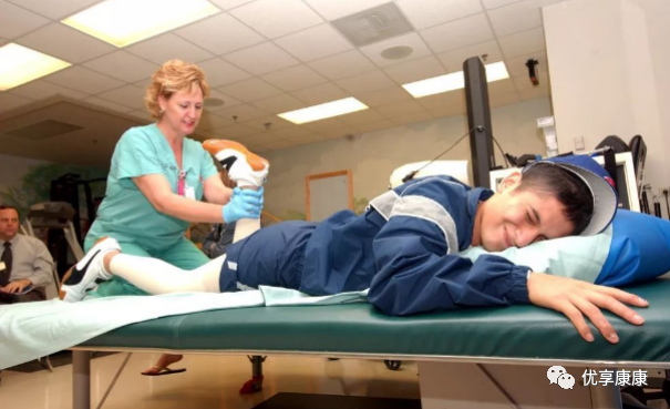 通过在躺卧和坐着时保持双腿伸展,并使用膝关节伸展夹板,可以避免膝关节屈曲挛缩。