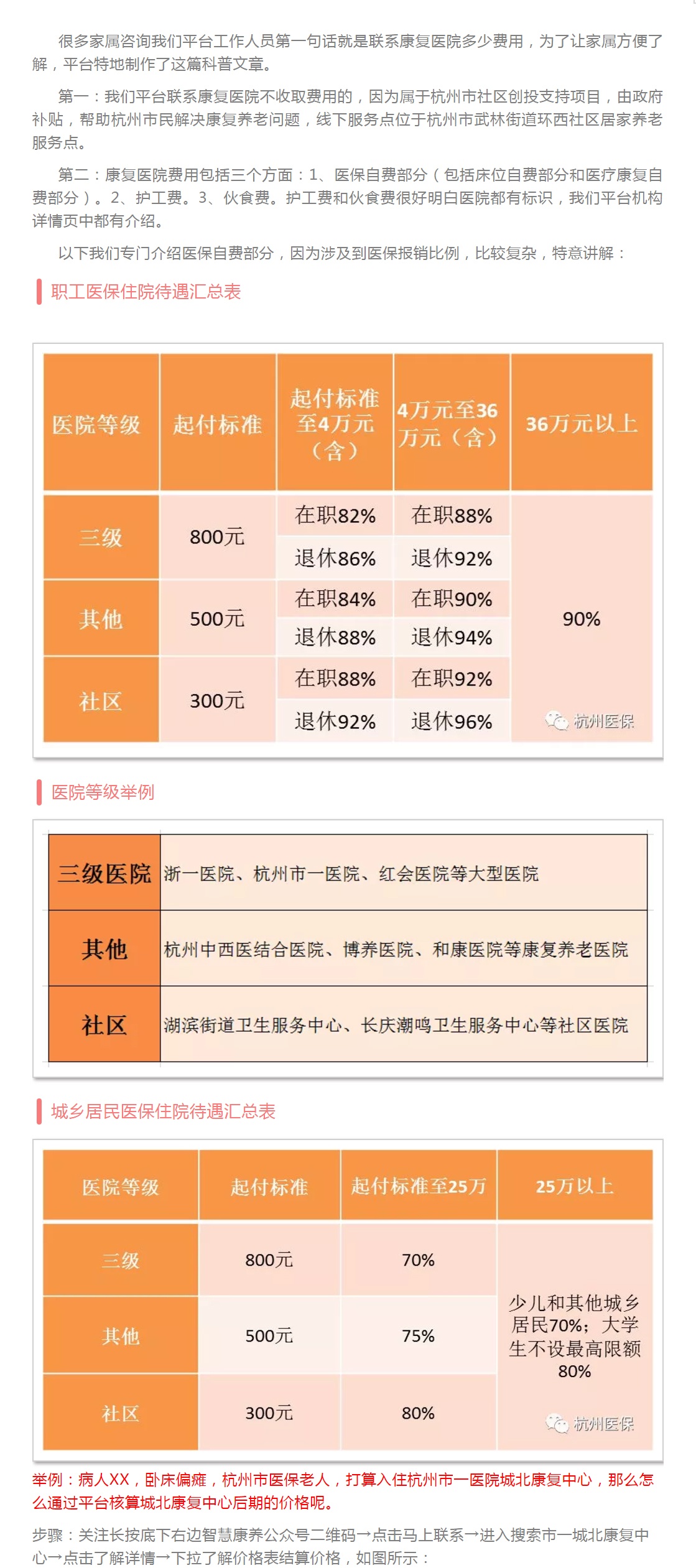 了解杭州大部分康复医院、老年医院、公立医院康复科价格