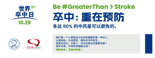2023年10月29日是世界卒中日,今年的宣传主题和口号:“卒中:重在预防”