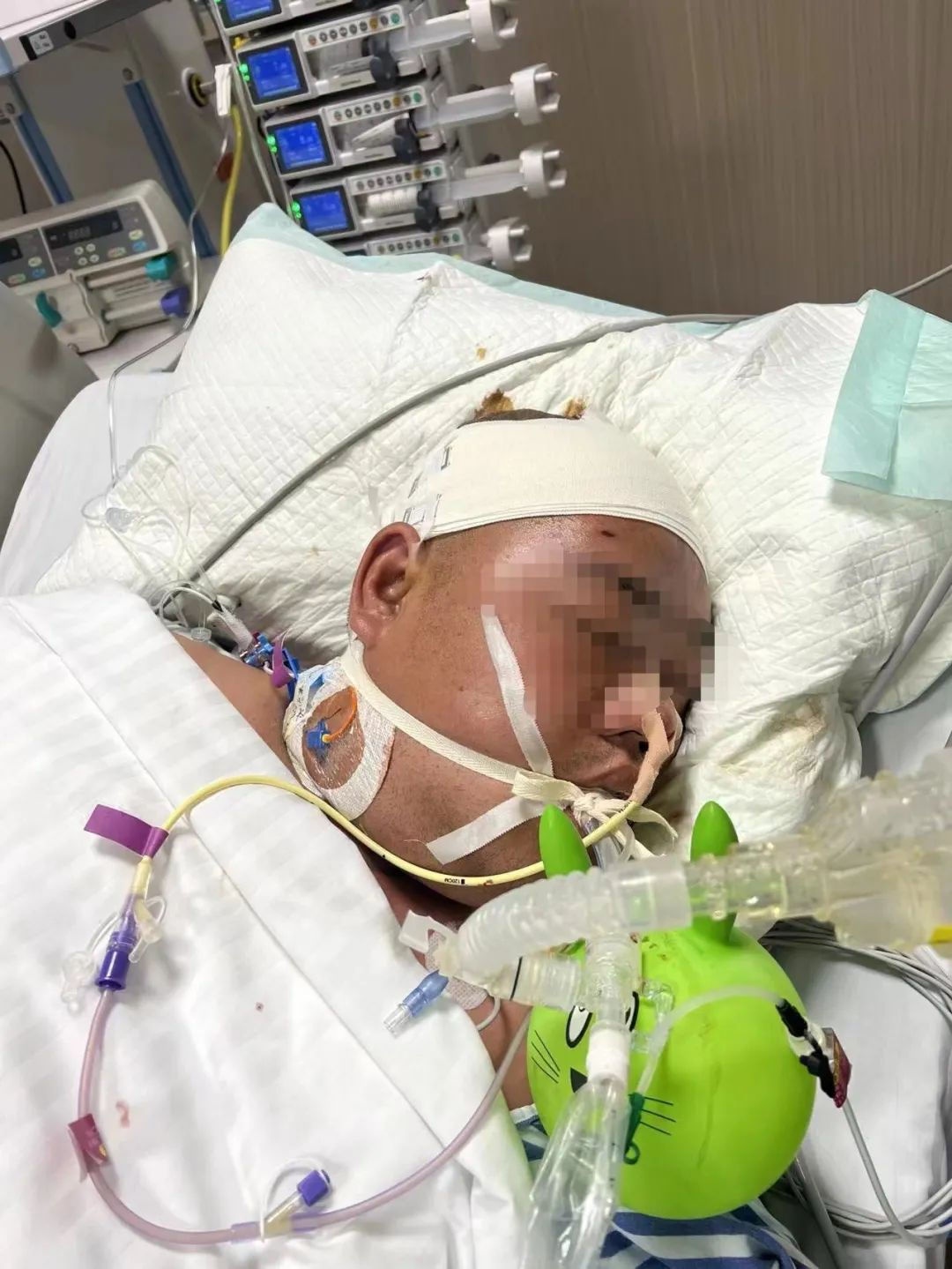 患者蓝大哥,今年只有37岁,3月底昏倒在路边,意识不清,被发现后急送到当地医院诊治,为求进一步治疗转至我院。经诊断为“脑出血、高血压病”。因病情危急,转重症医学科救治。两天后行“立体定向颅内血肿穿刺引流术”,术后对症治疗。期间,我院早期康复团队介入,为其制定严密的康复方案开展心肺康复、体位训练、关节被动运动等康复训练,力求减轻患者致残程度。在医护人员的精准救治和严密监护下,蓝大哥度过了重重难关,并在生命体征平稳后转至康复医学科进行综合康复治疗。