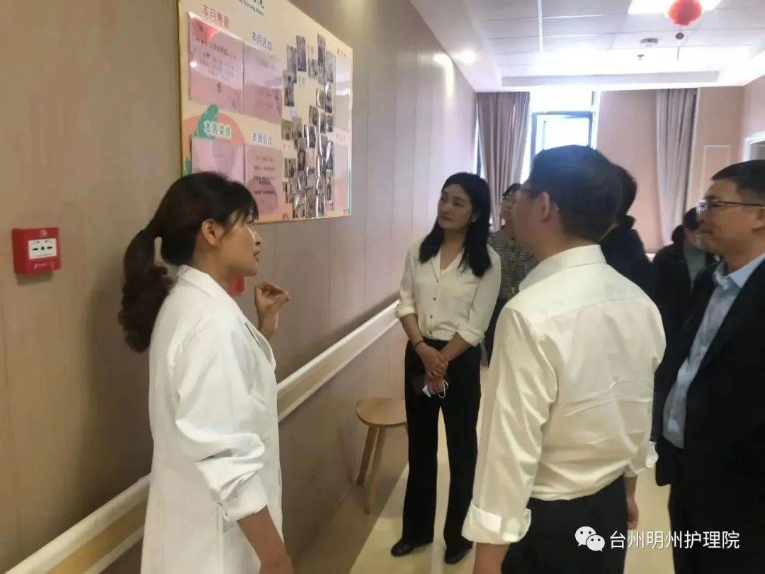 张书记一行参观了明州护理院门诊、养老区、康复治疗大厅、失能半失能区、认知症照护专区等区域。