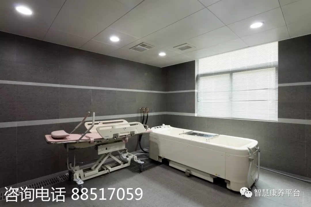 分层设有供老人洗澡的浴室,浴室内配备专业的助浴设备,由护理人员陪同协助老人洗浴。