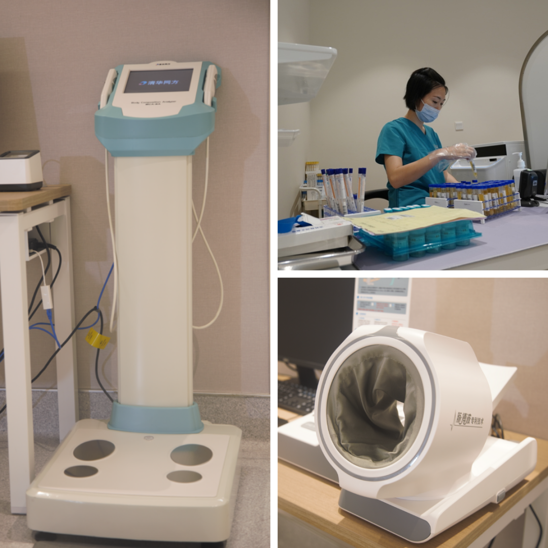 诊疗中心备有无创辅助呼吸机,人体成分分析仪、动态血压监测仪、多导联心电监测仪、心电图机、心脏除颤仪、静脉输液泵等先进的诊疗和监护设备等相关项目。