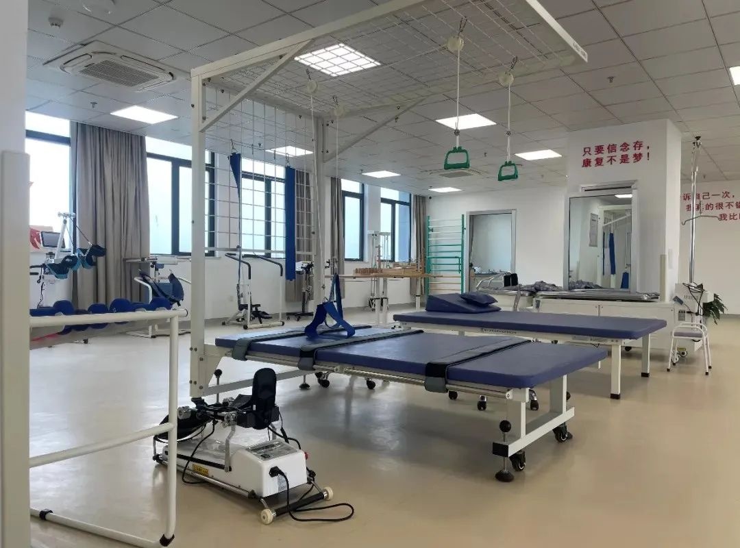 设有康复治疗大厅、康复门诊、康复功能评定室、物理治疗(PT)室、作业治疗(OT)室、语言吞咽治疗(ST)室、物理因子治疗室、按摩室、针灸室、中药熏蒸室等。