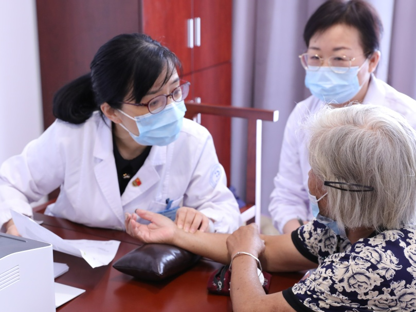 临平一院主任中医师陈丽娟正在运河为患者诊断病情