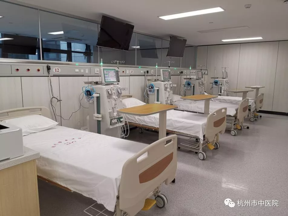 即将开放的我院丁桥院区血液净化中心则拥有3000余平方米的超大用房面积,按照高标准、高规格建设,全面投入使用后可配置120台血液透析机。医护团队更是从武林院区挑选的“精兵强将”,采用先进的数字信息化管理系统对血透患者进行智能化管理,通过数据采集、实时监控、综合分析等手段准确控制治疗过程、确保患者安全,并及时跟进调整治疗方案;血液净化中心还采用中药口服、艾灸、穴位贴敷、足浴、脐疗、中药全结肠灌洗等多种中西医结合治疗方法,不断提高血透病人的生活质量。