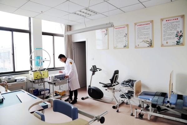 康复活动室:配备了上下肢主被动康复训练器、减重步态训练仪、肩关节康复训练仪、电动直立床、下肢功率车、可调式沙磨板及附件、站立架、作业疗法桌、肋木、作业训练器等。