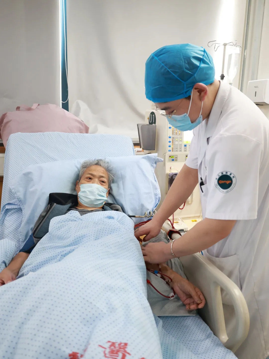 张奶奶与2021年起便开始了漫长的透析生活,每周固定3次。张奶奶的两个女儿都定居国外,因对养老质量和治疗效果都有着较大需求,她开始关注能兼顾养老与透析的医养场所。经过实地考察,他们发现静孝颐养院就紧邻着康静医院,康静医院内开设有血透中心,老人透析时,由护理人员陪同到透析中心,透析结束后,再由护理人员到透析床前接送,全程无缝衔接,还能根据老人自身需求和时间安排进行夜间血透,解决了血液透析与护理问题。两个女儿对医院专业的医养结合服务和血液透析质量给予了高度评价和充分信任。长期以来,老人各项透析指标向好,女儿同时也不定期来探望。“还是你们这里好,把我妈妈交给你们我很放心。”这是张奶奶女儿们对我们的评价。除张奶奶之外,静孝颐养院内还有9名长者定期来到康静医院血透中心进行血液透析,让透析治疗轻松化、让生活特养品质化,迎接美好生活。
