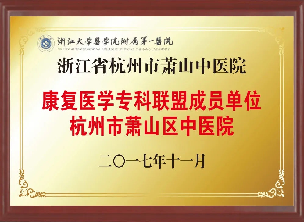 杭州市萧山区中医院康复科创建于2010年,自建立以来,着力推动医、教、科、研同步发展,不断创新临床技术、提升科研能力、充实人才队伍、优化服务品质,积极发挥着区域医院的引领作用,为“杭州市首批基层医疗中医特色专病(专科)”“萧山区康复医学质控中心”“浙江省康复专科联盟常务理事单位”“浙江省康复专科联盟肌骨疼痛康复联盟副主任委员单位”“浙江省中西医结合康复医学联盟成员单位”“康复医学专科联盟成员单位”。