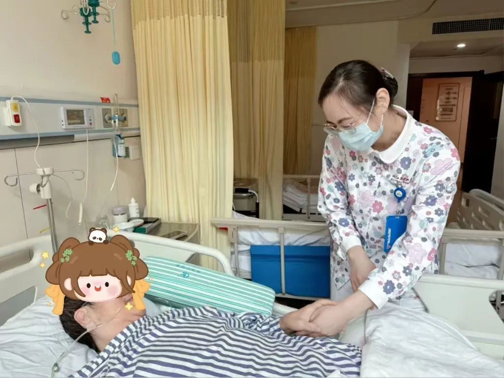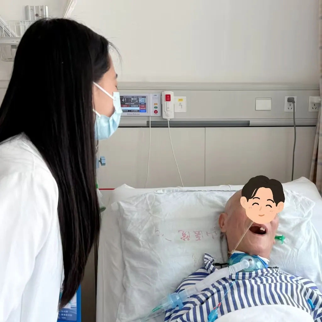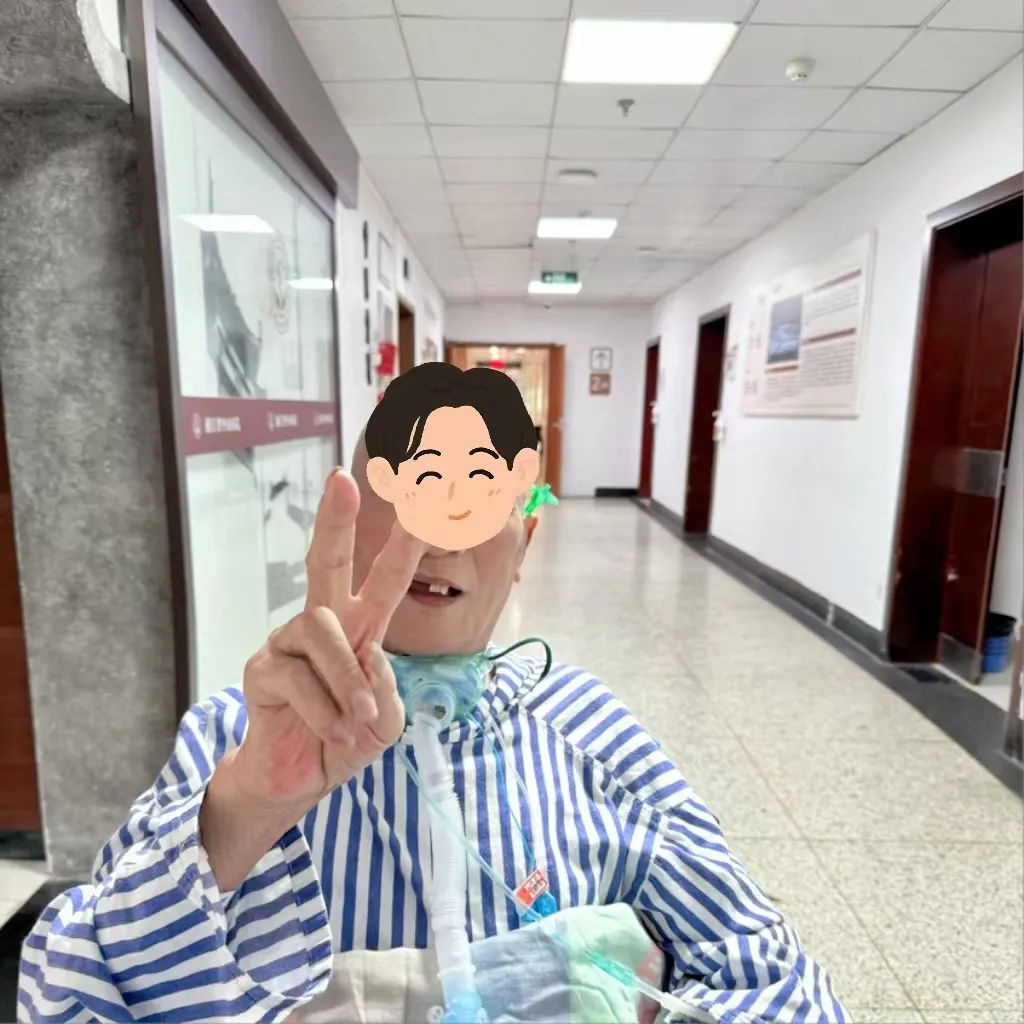 79岁患者詹大伯,半年前突然脑出血,经过手术等一系列降颅压治疗,后又继发了肺部感染住进重症监护室,后行气管切开接呼吸机辅助呼吸,病情稳定后转入我科治疗,詹大伯从高频吸氧、意识不清、严重的肺部感染一步步一边接受治疗一边做康复训练,大伯每日的日程都排的满满的,那个刚来意识不清的詹大伯如获新生,最近都在练习使用说话瓣膜说话了,大伯带上瓣膜开口的第一句就是想谢谢这些一直为他付出的可爱的家人们,说他要给我们比个耶。