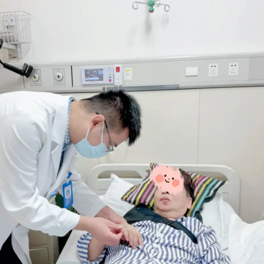 69岁患者钱阿姨,一月前在家突发意识不清,去医院诊断“左侧大面积脑梗死”,后进展为“左侧大脑中动脉梗塞伴出血转化,脑疝考虑”,家属果断选择转至我院康复医学一科进一步治疗,钱阿姨刚来的时候高颅压,意识不清,大小便不能控制,经过中医康复科的中西医联合康复治疗及训练,一月后,钱阿姨的左侧大脑中动脉供血区梗塞灶,较刚入院时出血大部分吸收,现在钱阿姨每日都要坐着轮椅来回于康复治疗室跟病房之间,脸上洋溢看幸福的笑容,眼看一天比一天好,听到自己接下来即将要拔掉胃管,自己吃饭了,阿姨激动的拉住潘护士的手不愿放开。