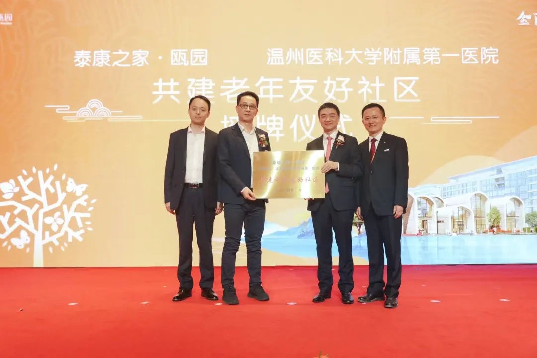 值得一提的是,泰康之家·瓯园紧邻温州市内第一、浙江省内排名前列的三甲医院——温州医科大学附属第一医院,仅一街之隔的物理距离,带给居民的是强有力医疗保障和巨大的安全感。活动当天,温州医科大学附属第一医院为泰康之家·瓯园授牌,双方共建老年友好社区。活动现场,泰康之家·瓯园还与数十家共建合作单位签约。