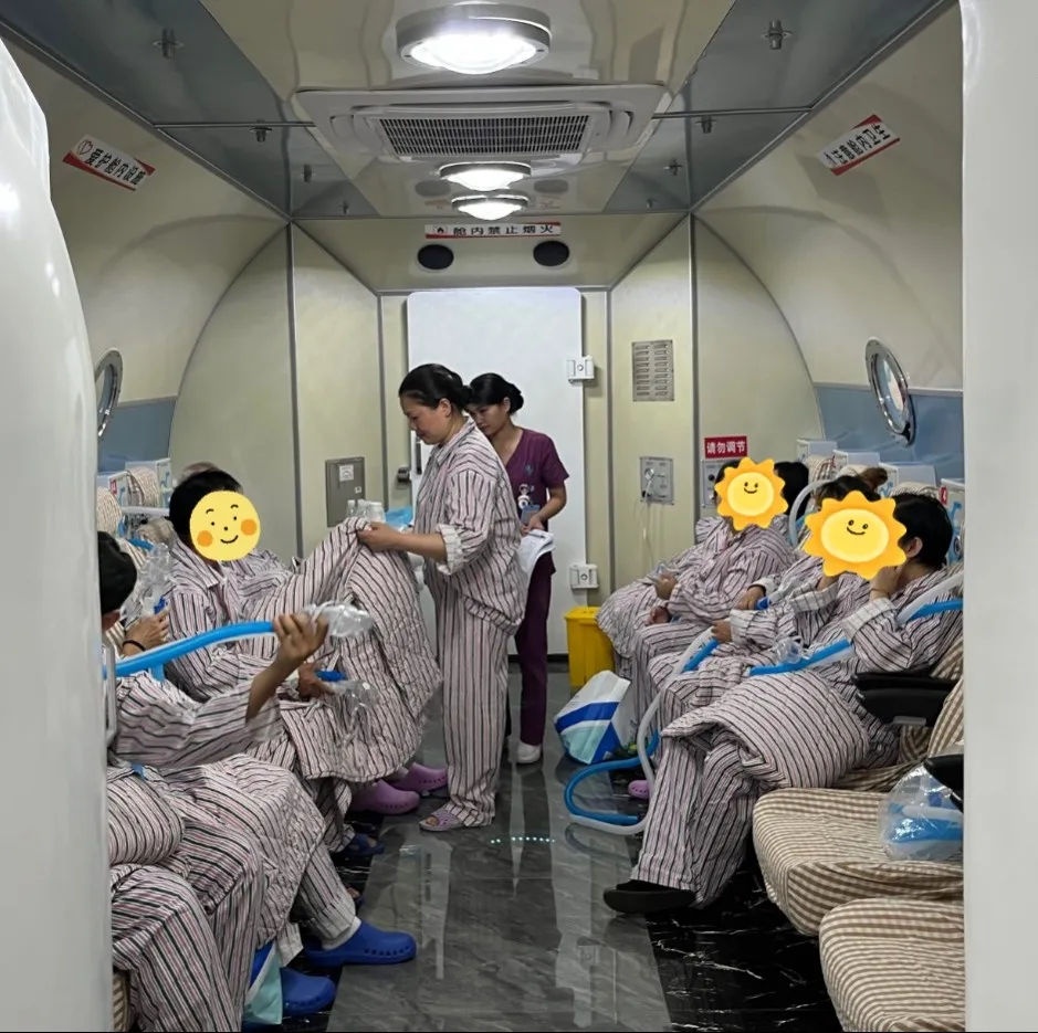 幸好,患者一家治疗及时,现病情已经平稳,后续仍需十天的高压氧舱治疗。我院特安排值班人员每晚提供高压氧治疗服务,既能及时得到治疗、也不耽误朱先生一家白天的正常工作和生活。